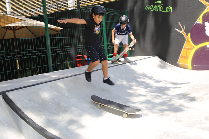 Nossos adolescentes têm um espaço especial para a prática de skate, um esporte olímpico que integra o mix de modalidades esportivas da AP. O Skate Park possui pista para patinação e skate, além de área de convivência e academia ao ar livre.